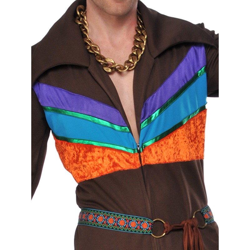 - Panels of orange and blue adorn the torso and cuffs and jumpsuit features slightly flared bottoms