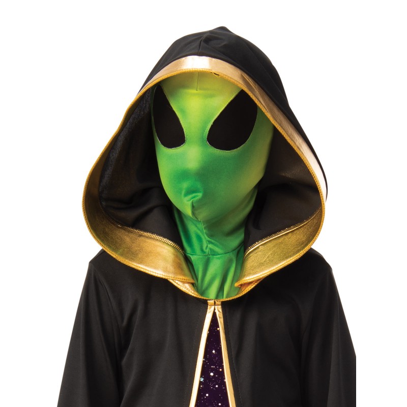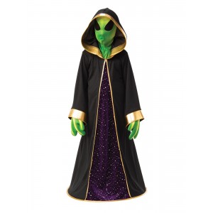 Startle people wherever you go with this fantastic alien child costume! Be a Martian, the Green Man from the Moon, an Alienology professor or just about anything else you can conjure up! Nobody messes with an alien and dressed so magnificently in this robe and mask, expect a hushed silence and terror in people’s eyes.