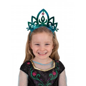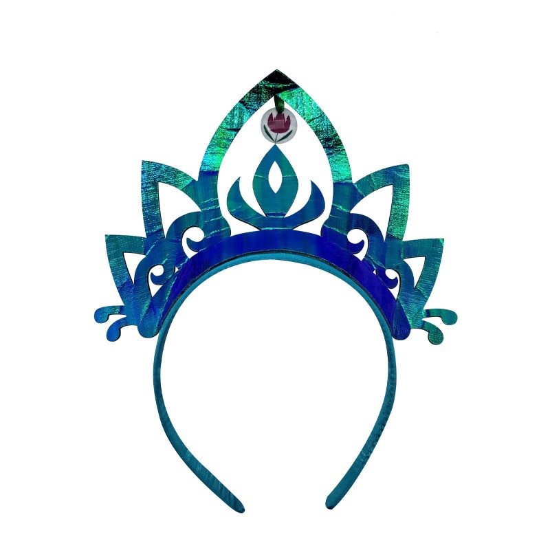 - Shimmering iridescent tiara in shades of blues, greens and purples