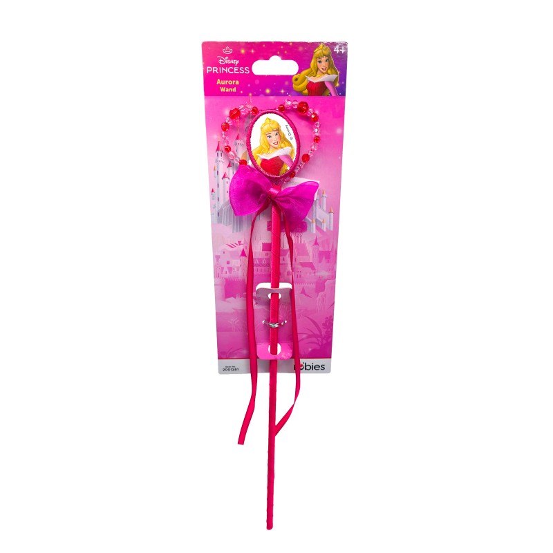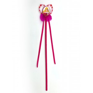 - Wand is on a plastic stick covered with ribbon and has a tulle bow attached