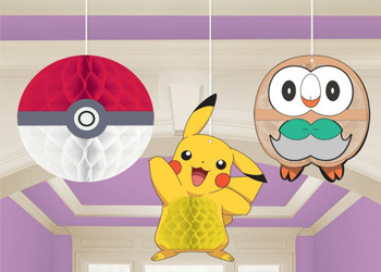 You can easily buy special Pokemon decorations ranging from regular balloons to foil balloons that come in different shapes and in bouquets, swirl decorations for the ceiling, birthday banners, and many other decoration elements.