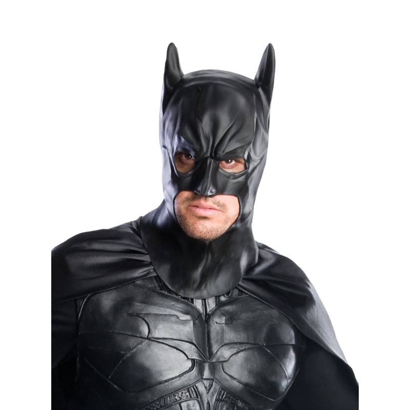 - Moulded full mask with cutouts for mouth and eyes, plus satin cape with scalloped hem