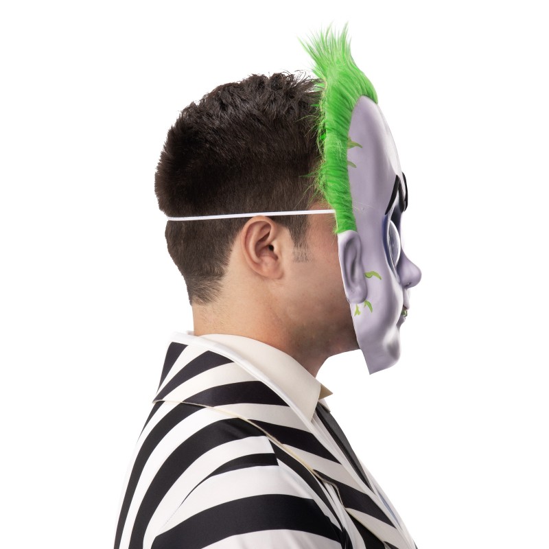 - Injection Moulded Plastic Mask of Beetlejuice's face with attached long pile green faux fur hair