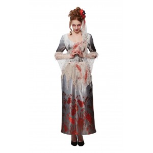 - Headpiece is a floral design with attached side veil, also with faux blood splatter