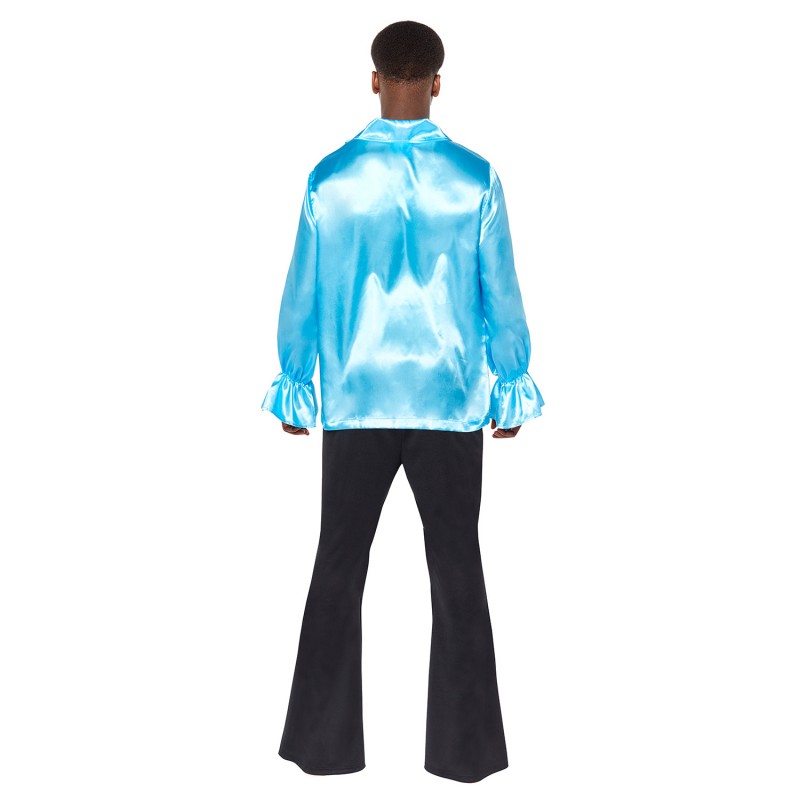 Blue Satin Ruffle Shirt Men's Costume XL product details: