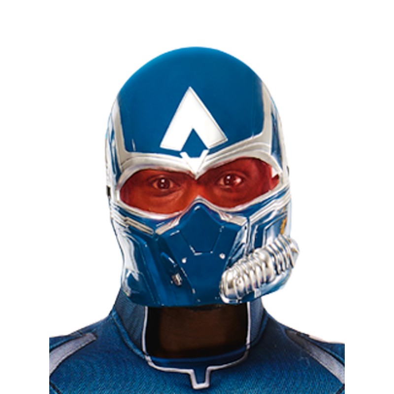- Hard plastic molded mask with painted details plus elastic strap with velcro. Mesh in the eye holes