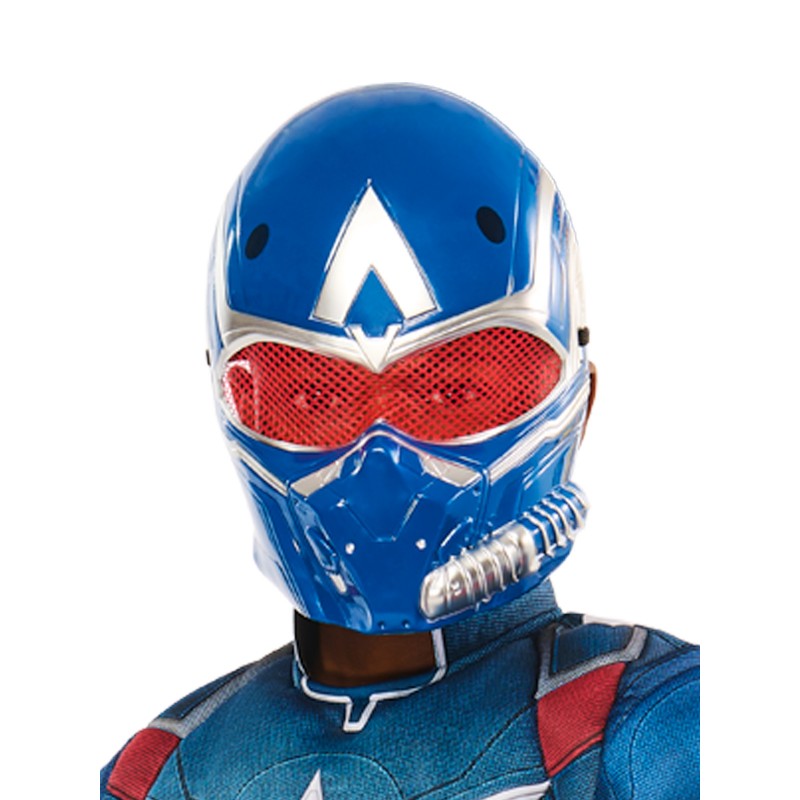 - Hard plastic molded mask with painted details plus elastic strap with velcro. Mesh in the eye holes