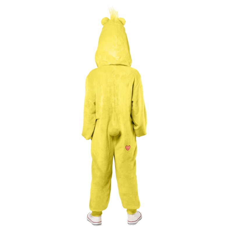 - Plush all in one bright yellow jumpsuit with front zipper closure and trademark belly badge of a sun in the centre of the tummy