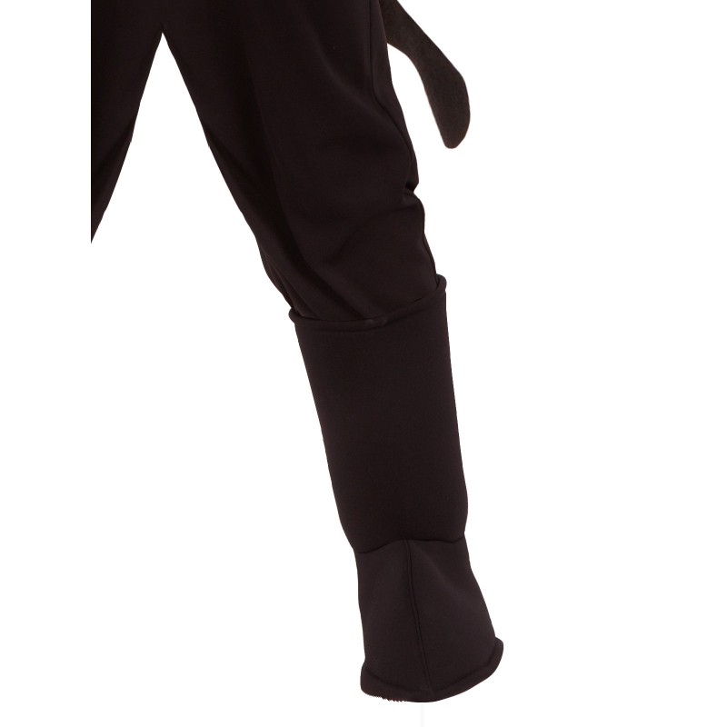 - Jumpsuit features attached boot tops and has velcro closures at rear