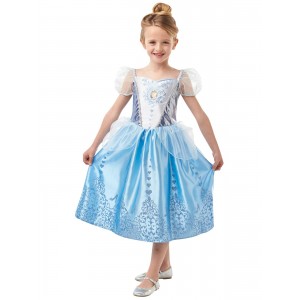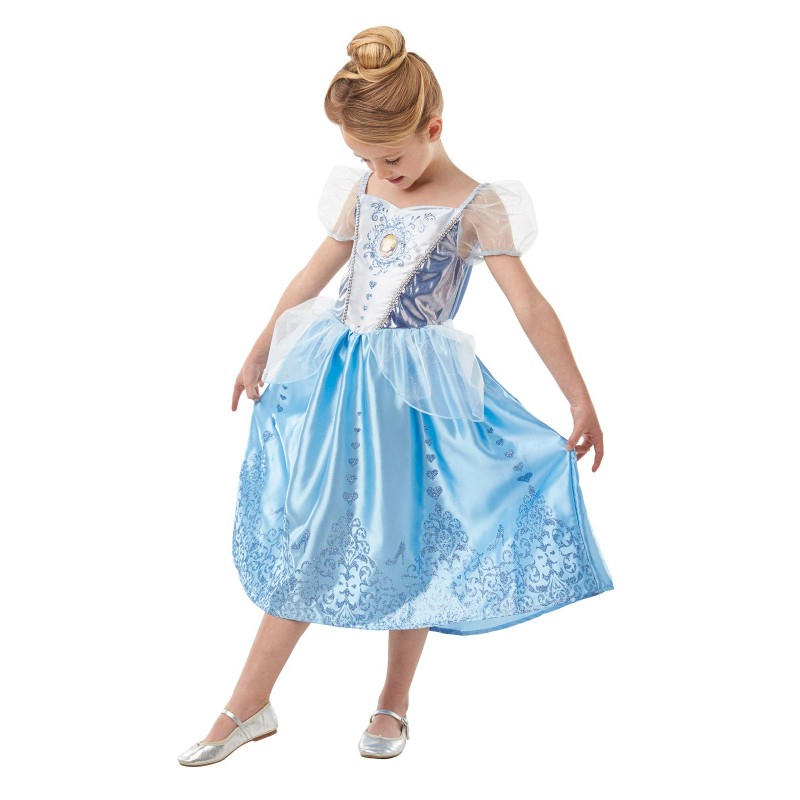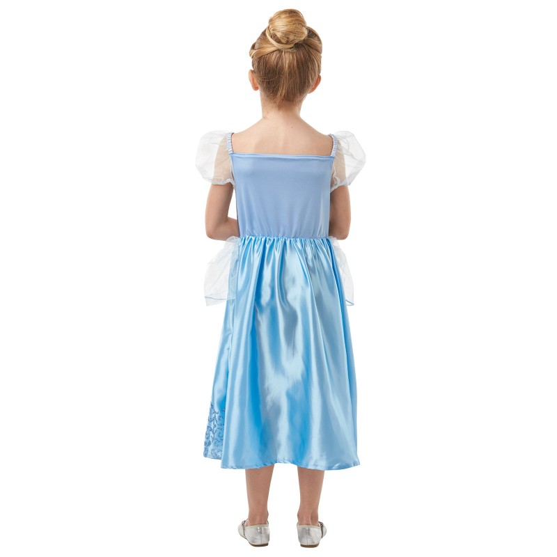 - Dress featuring satin bodice with digitally printed character art embellishments plus silver braid trim