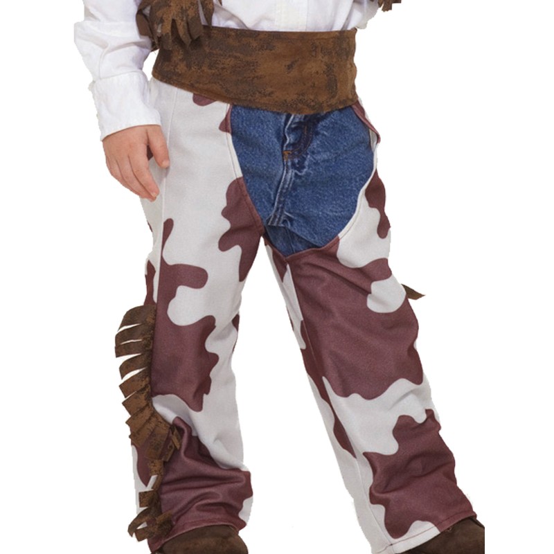 - Flannel cowhide-print chaps with fringe tassles