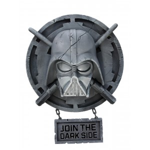 - Faux stone finish features Darth's iconic helmet and mask