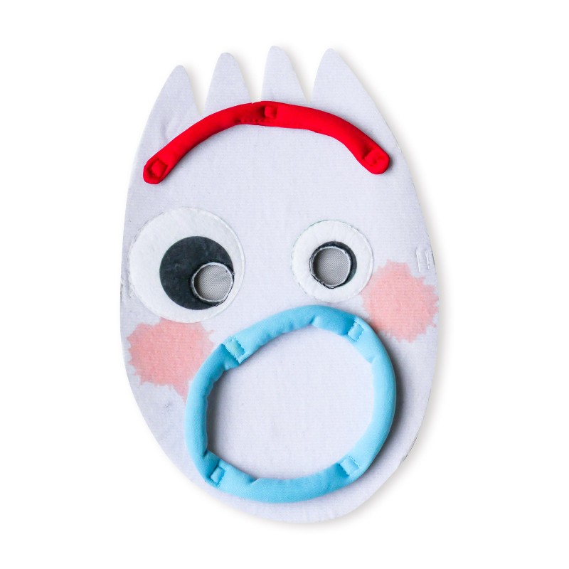 - Felt mask with fork head shape, printed detail and moveable mouth and eyebrow features