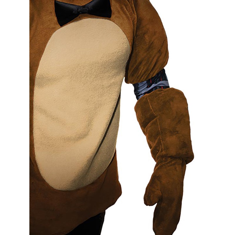 - Costume top in plush fabric with sewn in belly panel and attached satin bow tie