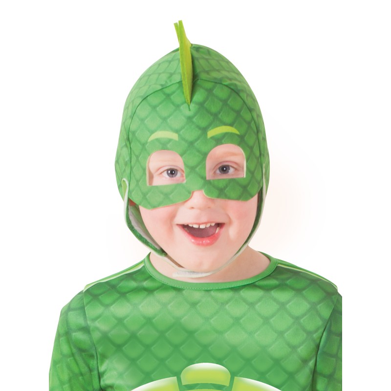 - Soft fabric headpiece features 3D stand up reptile fin and cut out eye holes and closes with veclro under chin