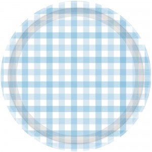 Gingham 23cm Paper Plate Pastel Blue NPC 8Pk