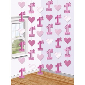 Girl's 1st Birthday Hanging Decorations 2.1m String 1st Birthday Pack of 6