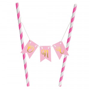 1st Birthday Pink Mini Cake Stand Kit - Kit Includes: Mini Pennant Banner 19.6cm and Mini Cake Stand 6.6 x 17.7cm