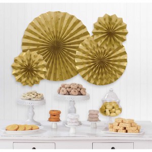 Glittered Gold Fans Hanging Decorations 4 pk product details: