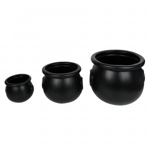 Fright Night Black Plastic Cauldron 3 Pack - 1 x 40cm x 40cm, 1 x 30cm x 30cm, 1 x 20cm x 20cm