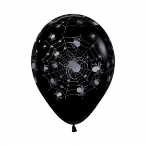 Halloween Fashion Black Silver Spiders Latex Balloons 30cm 12 pk