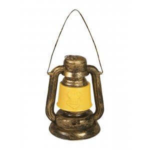 - Working moulded plastic lantern with weathered gold paint look to frame and yellow plastic diffuser with the Hogwarts emblem moulded into it