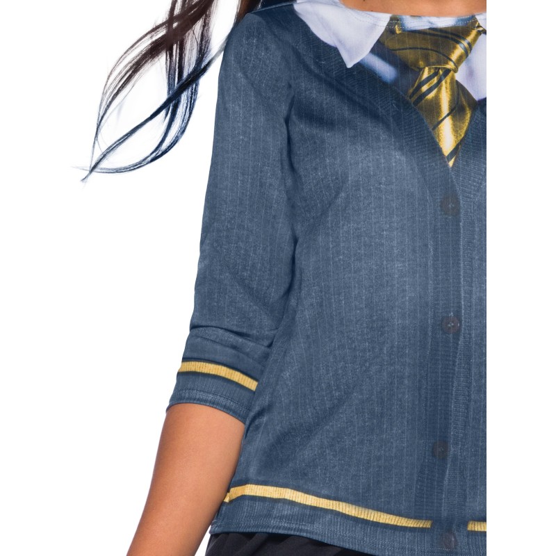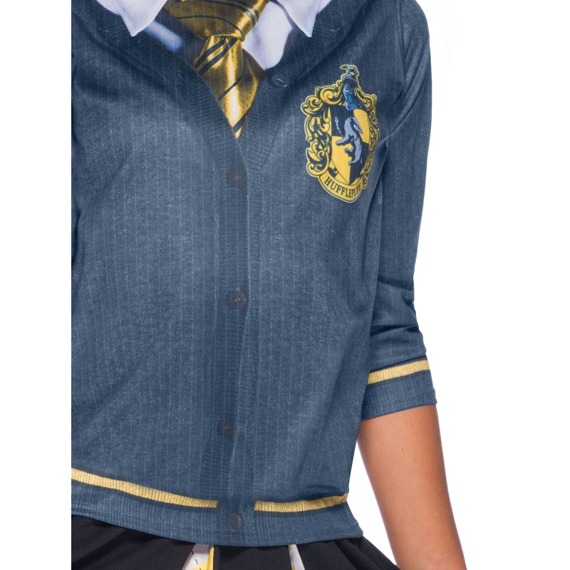 - Printed detail includes cardigan with cuff details and buttons, shirt, tie and house emblem