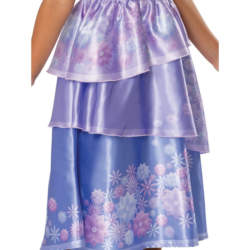 - Tri-layered skirt has a digitally printed organza top and middle peplum and full matt satin skirt underneath, with digital print. Shoes not included