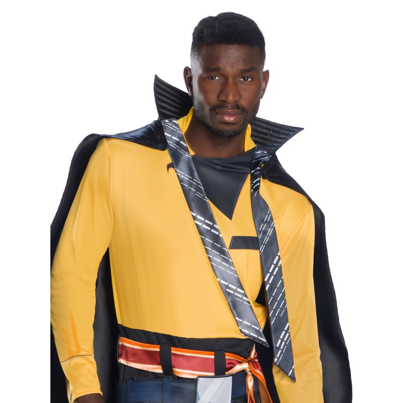 - Separate cape is grey, with a high collar and attaches at the shoulders with velcro tabs