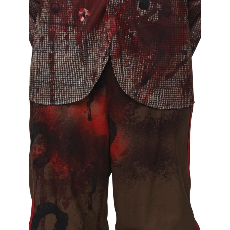- Digitally printed blood splattered jacket with faux bullet holes and attached shirt and tie