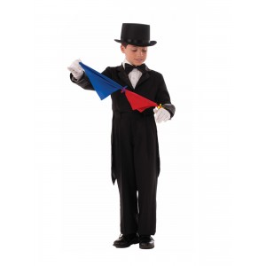 - Magician s tailcoat with waist-high front and long tails, satin fabric on the lapels and cuffs and plastic buttons