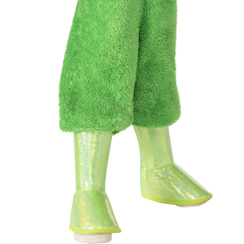 - Fleece all-in-one jumpsuit with full length sleeves and attached glittery green boot tops