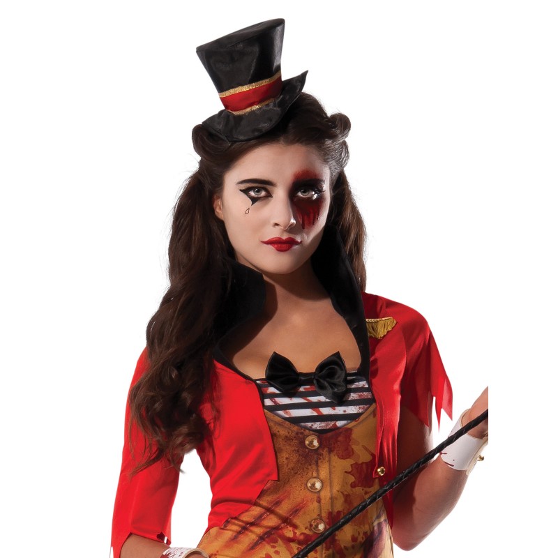 - Mini hat on headband and two foam backed fabric cuffs with printed blood splatter