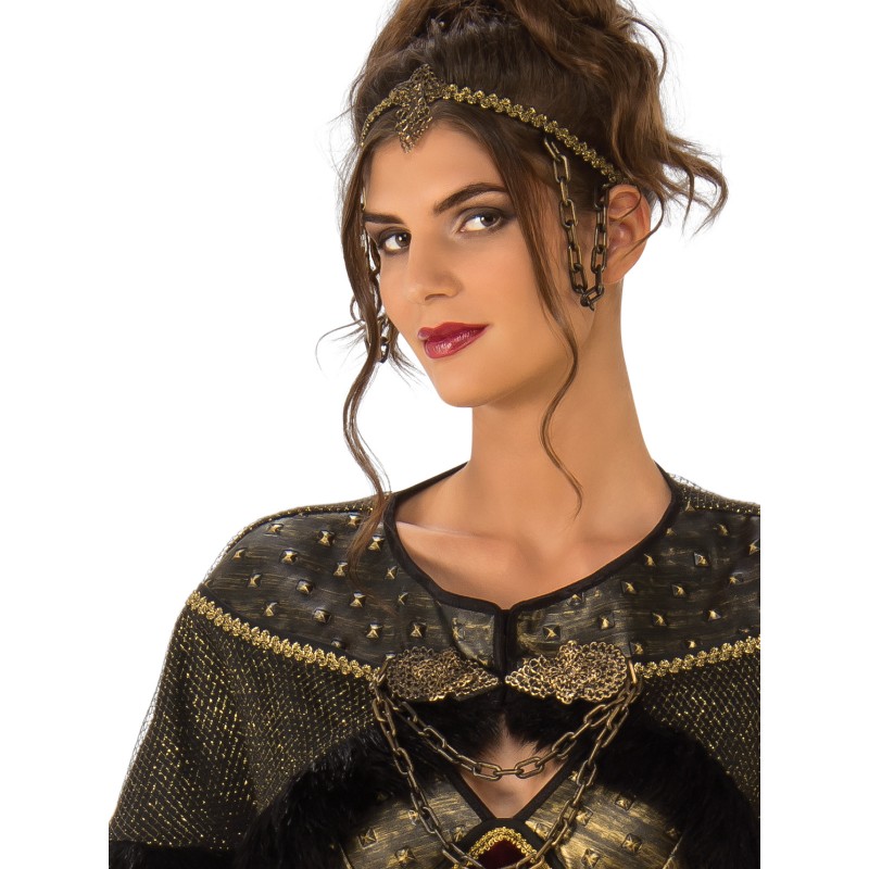 - Headpiece with gold braid, pendant at centre and chain details