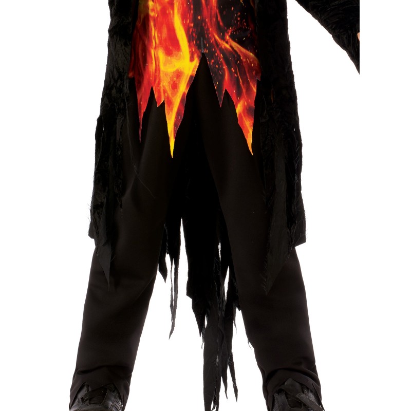 - Attached shirt with digitally printed fire plus striped underlayer and attached satin bow