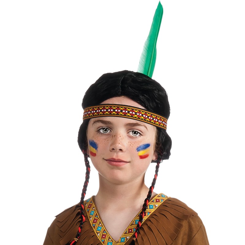 - Faux feathered headdress with side plaits wraps around head and fastens with velcro tabs at rear