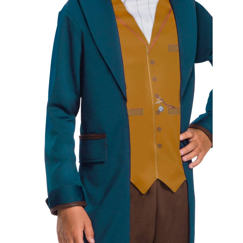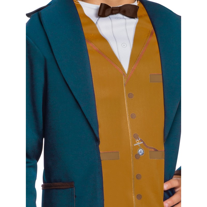 - Vest and shirt feature printed pockets, stripes and buttons and attached bow tie