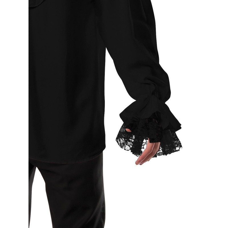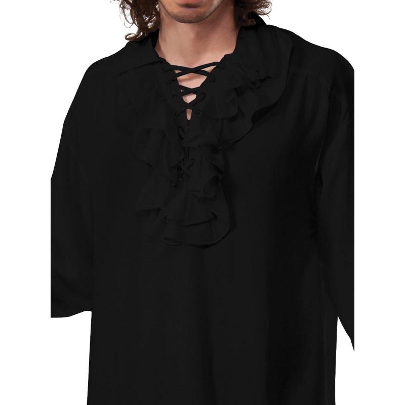 - Long black pirate style shirt with lace up front and feature ruffle at chest