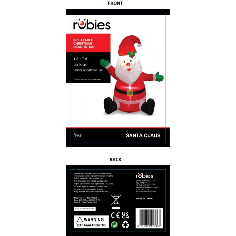 - Santa Claus inflatable standing 4 feet tall (approx 1.22 metres)