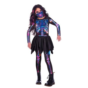 Strike fear in people’s hearts dressed up in this electrifying skeleton costume. With itis eye-catching look, it is sure to turn heads. The contrasting colours against the black fabric make the skeleton details pop, adding a touch of vibrant spookiness to any costume event.