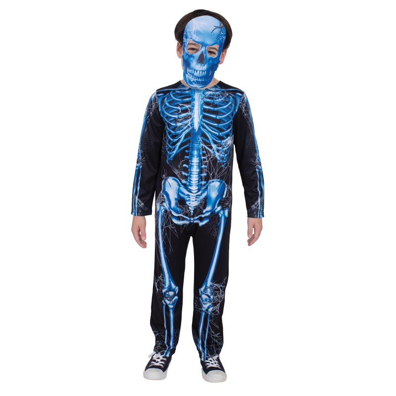 - Glow in the dark elements are on the torso and legs on the front of the costume only