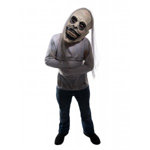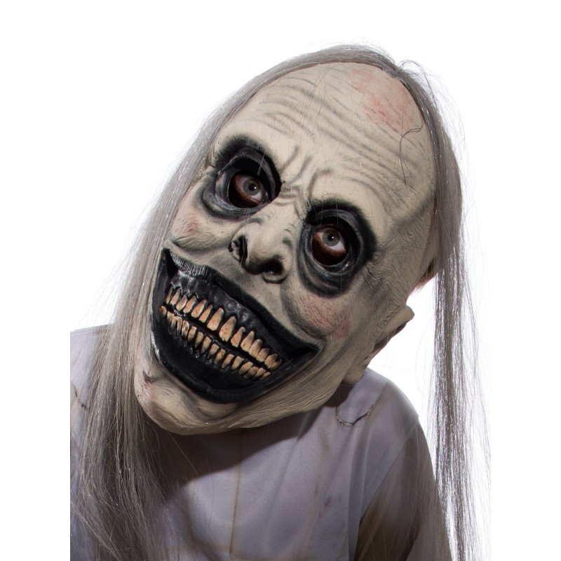 - Mask has polypropolene hair strands attached in patches from the skull