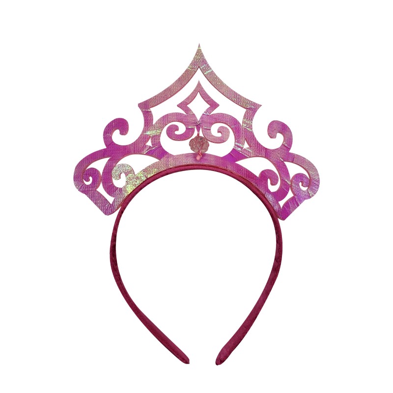 - Shimmering iridescent tiara in shades of pinks, oranges and golds