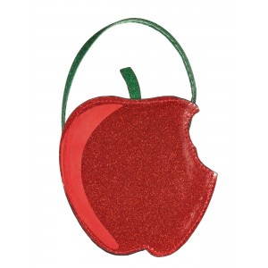 - Snow White's Apple glittery handbag with attached green strap and plastic piped edging