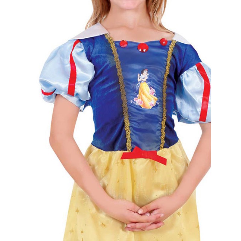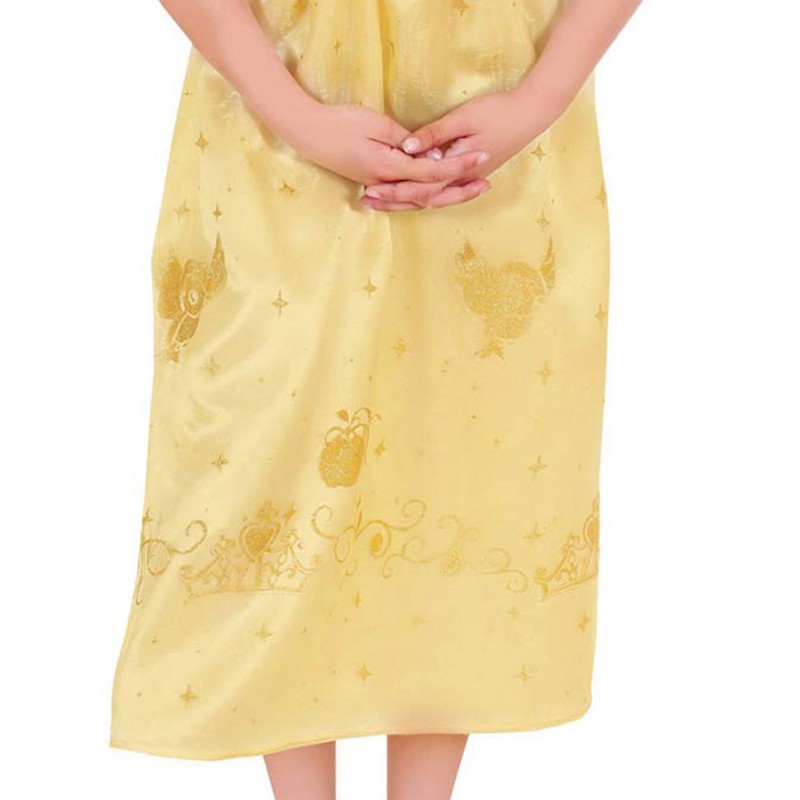 - Velour and satin bodice with gold trim, character print and jewels on the neckline