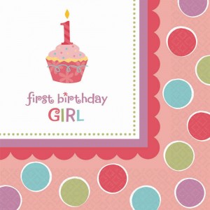 Sweet Cupcake 1st Birthday Girl First Birthday Girl Beverage Napkins 25cm x 25cm Pack of 36