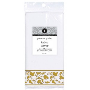 White with Gold Trim Premium Paper Table Cover 1.37m x 2.59m product details:
