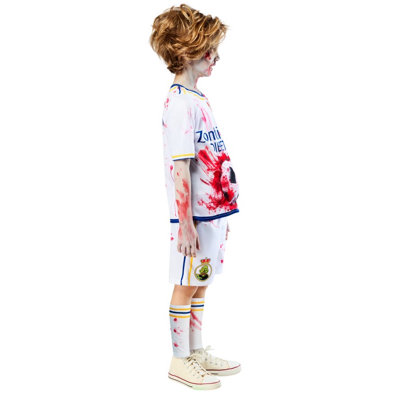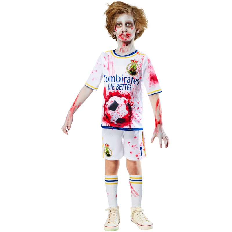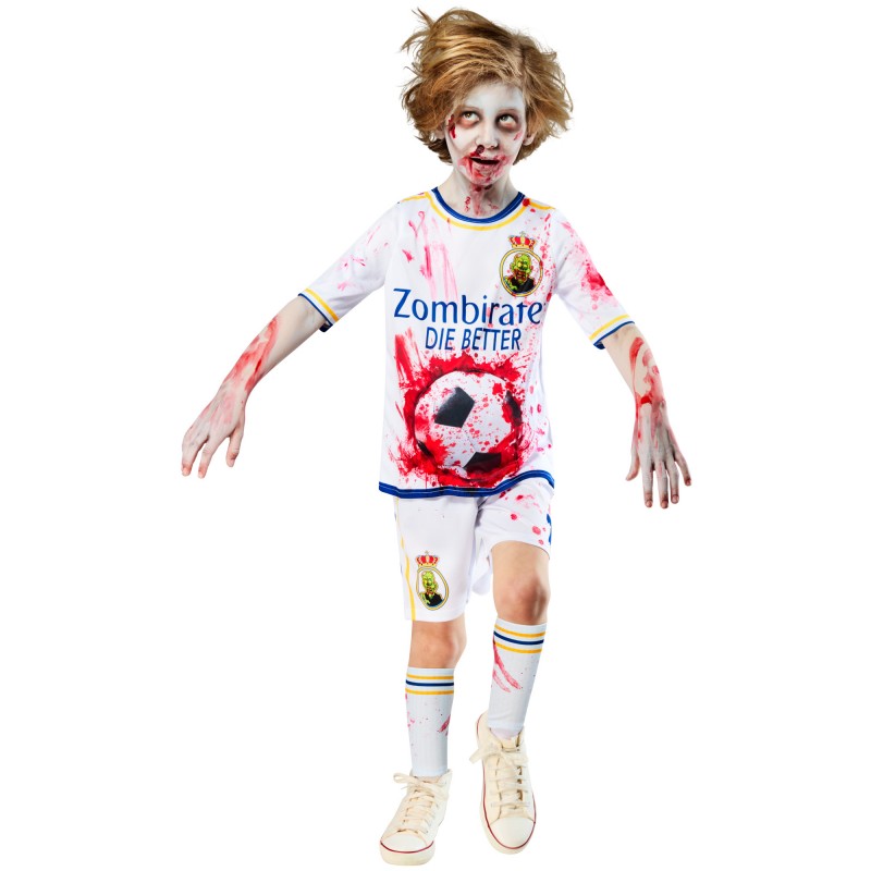 - Soccer top with digitally printed blood splatter and smears and the words -Zombirates Die Better- printed